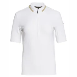 Ce t-shirt est issu de la sĂ©rie Cassia de la marque Goldbergh. Le t-shirt coupe slim est composĂ© de 80 % de polyamide et de 20 % d’Ă©lasthanne, ce qui rend le t-shirt Ă sĂ©chage rapide, rĂ©gulateur d’humiditĂ© et sans odeur. De plus, ce t-shirt prĂ©sente une cĂŽte structurĂ©e 2×2, une 1/2 fermeture Ă©clair cachĂ©e et des ouvertures de ventilation sur le cĂŽtĂ©. Vous reconnaissez le Cassia Ă l’Ă©tiquette tissĂ©e de la marque sur le cĂŽtĂ© et au col polo cĂŽtelĂ© avec bordure en lurex dorĂ©. Bref, une chemise parfaite pour le sport !