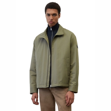 Cette veste est issue de la collection Marc O’Polo. La veste a un aspect dur et a une couleur verte. La veste a un col montant et l’ourlet est réglable. Il y a aussi deux poches latérales sur le devant. La veste peut être lavée à 30 degrés et ne convient pas au sèche-linge. Le logo Marc O’Polo est visible sur la manche et dans le dos.